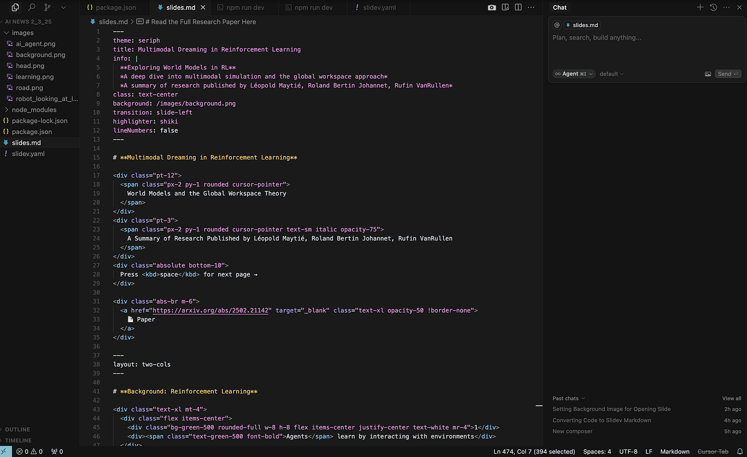 3️⃣ Compiled the Slidev code in Cursor—a coding tool that deserves its own discussion!